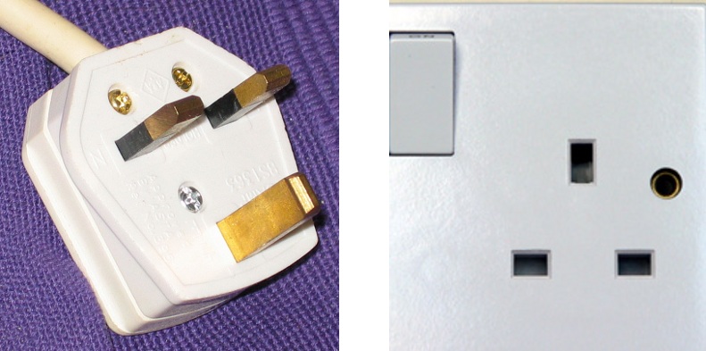 Occasionalmente sono presenti anche delle prese di tipo C molto comuni in Italia, coi 2 spinotti tondi, che però di solito sono degli adattamenti alle prese originali di tipo G.